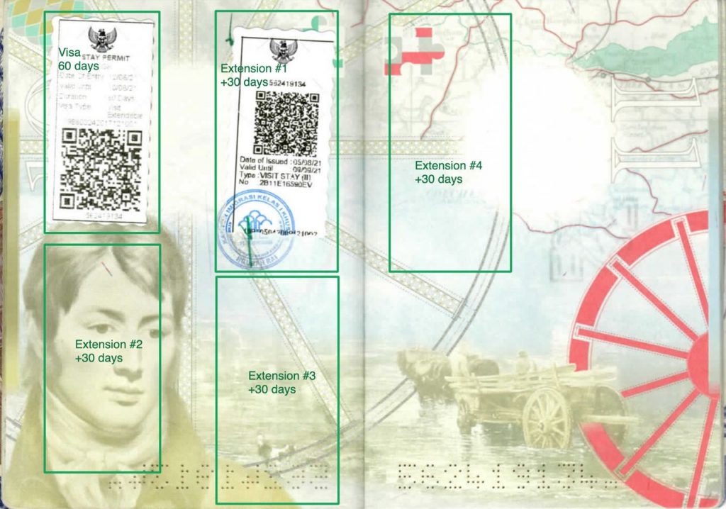 Туристическая / бизнес виза может быть выдана только в том случае, если срок действия вашего паспорта не менее 6 месяцев. Многим посольствам требуется 3-4 месяца для выпуска нового паспорта, вам придется посетить Джакарту. Мы рекомендуем иметь второй паспорт или начать делать его как минимум за 10 месяцев до истечения срока действия текущего, если вы хотите остаться в Индонезии на долгое время. Один день просроченной визы обойдется в 1 миллион рупий, а после 60 дней также последует депортация из страны.